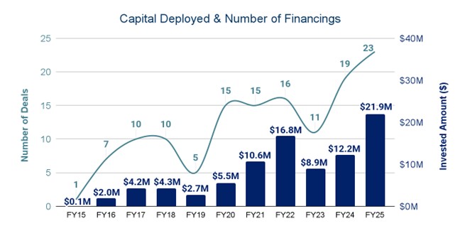 DCP outperformed the overall US macro venture capital market by 124.1% in terms of deal count and 82.3% in invested capital between FY23-25.
